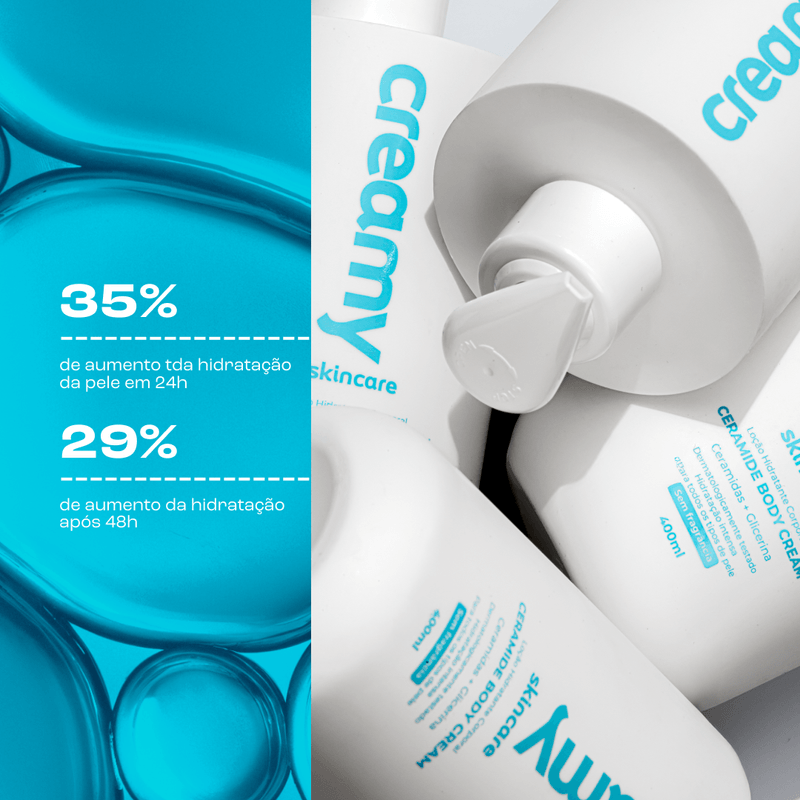 A loção hidratante Ceramide Body Cream tem como principal ativo a Ceramida do tipo 2, molécula responsável por manter a hidratação e a integridade da barreira cutânea.